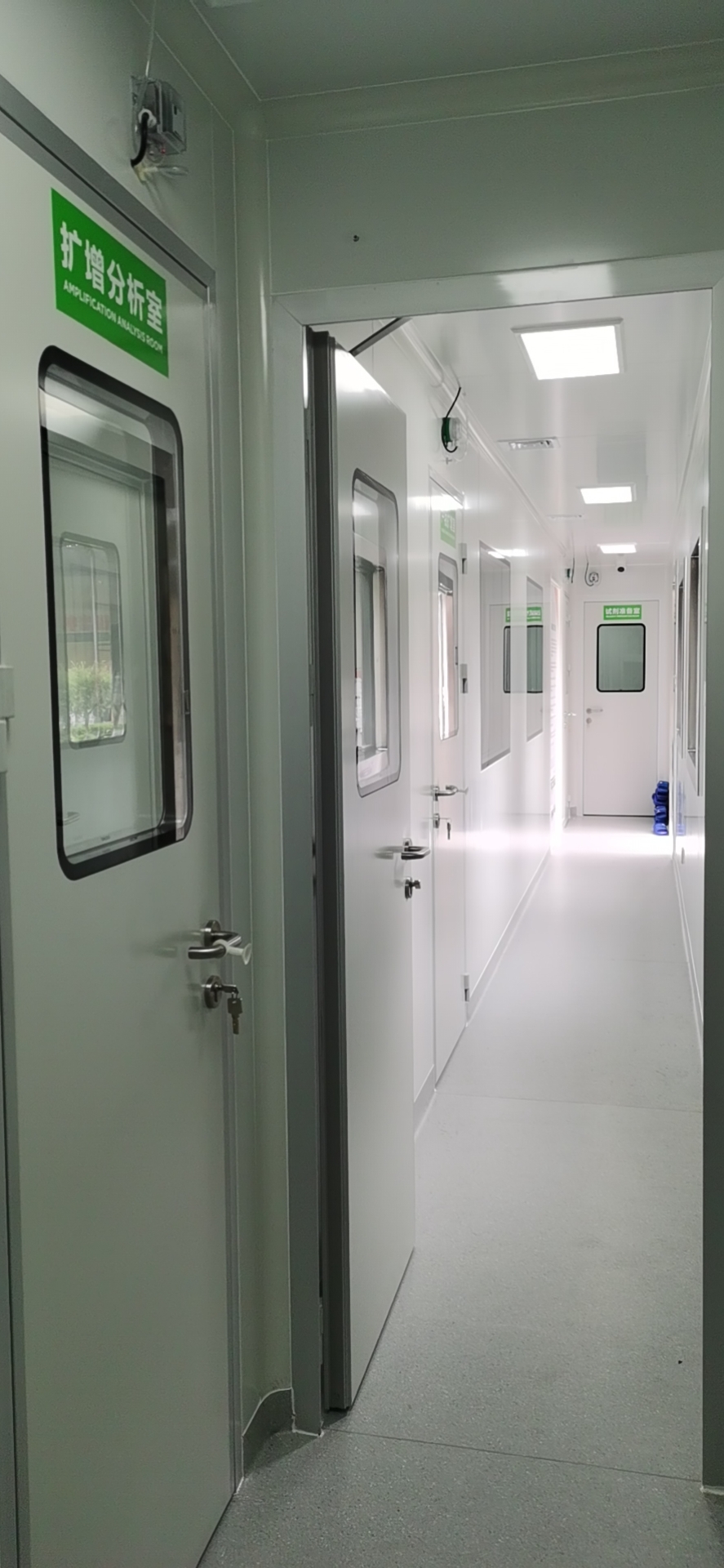 人員流向(xiàng):PCR走廊→緩沖間→實驗操作間(試劑準備室、标本制備室、擴增室、擴增物産分析室、洗消間)